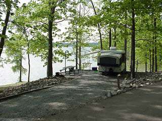 All three campgrounds have a wide range of amenities which include on-site park attendants, individual water hook-ups, electrical hookups, shower houses, playgrounds, horseshoe pits, volleyball area, hiking trails and nearby swimming areas. Each campsite has a fire ring/cooking grill, table and lantern holder. The Narrows and Baileys Point have washers and dryers available as well as ice and firewood. The Narrows also has a full-service Marina within walking distance. In addition, Baileys Point has a concession store with a limited supply of groceries and camping supplies available.
