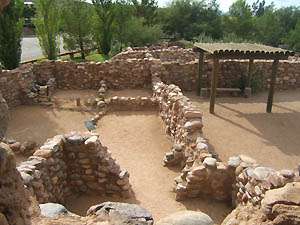 The pueblo was built in stories. Many of the ground floor rooms were used for storage as upper stories were added for living areas. Several of these rooms have been almost completely restored and contain the types of tools and pottery which were excavated at the site.
