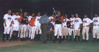 The team moved to El Dorado in 1996 and won the NBC World series championship its first year here. The franchise has won a total of four NBC titles since 1989, including the title in 1998. The team started in the early 1970s as the Hutchinson Broncos and moved to Wichita in 1985.