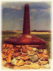 The Kansas-Nebraska Act of May 30, 1854, created the territories of Nebraska and Kansas, which had to be surveyed before settlement of the prairies could proceed. On May 8, 1855, Charles A. Manners set a cast-iron monument on the bluff west of the Missouri river at 40-degrees north latitude. In 1855-1856, Manners surveyed westward, from the cast iron monument 108 miles establishing the base-line, which is the boundary between Kansas and Nebraska and the Initial Point of the Sixth-Principal Meridian. This Initial Point, a red sandstone which lies under a manhole cover controls the system of sections, townships and ranges of the public land surveys in Nebraska, Kansas and parts of Colorado, Wyoming and South Dakota. This Initial Point is referenced in all ownership records throughout the system. On June 11, 1987, the Professional Surveyors of the Sixth-P.M. dedicated the memorial.