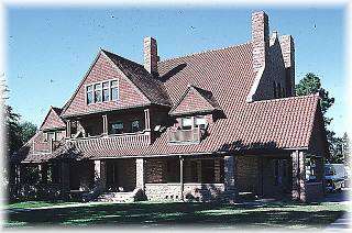 The Frank House, built by George Washington Frank, was constructed in 1889. The three-story house listed on the National Register of Historic Places, is made of red Colorado sandstone, with English golden oak interior paneling and lumber, and hand carved woodwork and has seven fireplaces (10 originally). The mansion was wired for electricity during construction, ten years after Edison invented the light bulb. The landing on the staircase features a 5\’ x 9\’ Tiffany window.