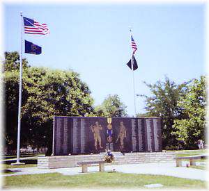 The 13×46 foot, black granite memorial was dedicated to the men and women who lost their lives in the Vietnam War. The memorial lists the names of the 797 Kansans who were either killed or are still officially listed as Missing in Action.