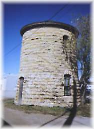 A unique stone building in Wilson, Kansas, is the round jail built around 1911. Originally it was used for a water tower of the city, with the lower part serving as the jail. The 18 foot diameter tower had an area down in the ground floor that was big enough for the city Constable to house his prisoners until the train or wagon came to take them to the county seat. In 1956 the bars were installed on the windows. The pump was in the tower part; it pumped water most of the time not only for human consumption, but also for laundry, gardens, and to water down the dirt roads, and for emergency fires.