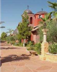 In July 1995, six monks came to the barren Sonora Arizona desert from the Holy Monastery of Philotheou, Mount Athos. Upon their arrival, the fathers begun with the necessary construction work, building first the main church, living quarters for the monks, the dining hall and guest facilities. A vegetable garden, a small vineyard, citrus orchards, dot the landscape. An elaborate system of gardens, pathways, and gazebos with Spanish water fountains, truly render the monastery and its extensive grounds an oasis in the desert. Because St. Anthony’s Greek Orthodox Monastery follows the “cenobitic” way of monastic life, all things are common to all, and everyone follows the same daily schedule, under the discretion of the Abbot. Meals are eaten together, and the work, rest periods, and services are conducted according to the monastery’s schedule.