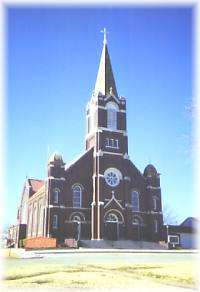 The St. Rose Catholic Church built in 1922 welcomes visitors through its magnificient set of brass double doors artisticly decorated in metalwork of symbolic emblems representing twelve saints.
