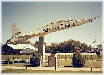 The T38 Talon Training Plane was flown into Salina by Commander Burl “Peanuts” Rice and a memotial plaque reads: