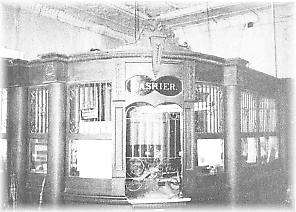 Time has stood still for the Farmers State Bank in Aliceville. It has been in business since 1908. The ornate oak tellers’ cages, with their copper grillework, beveled glass panels, and marble baseboard, were taken from a bank at Westphalia, and they give a good idea of what oldtime banks looked like.