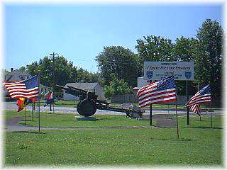 A “Jeannie” howitzer stands aside the veteran’s memorial located on MacArthur Blvd. at Miner’s Park.