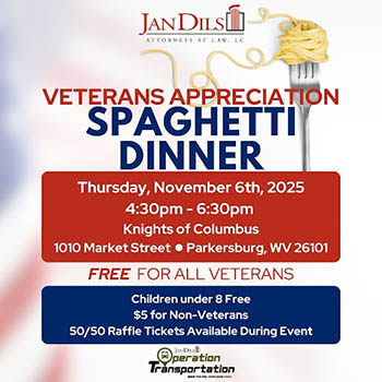 Join Jan Dils, Attorneys at Law, for our annual Veterans Appreciation Spaghetti Dinner!