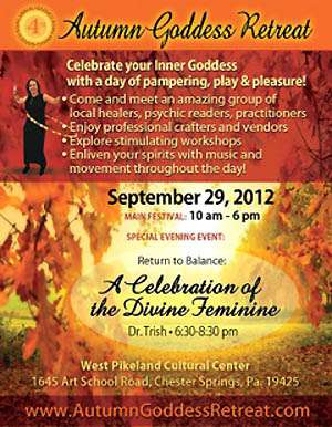 We will be ending the day with a special celebration: “Return to Balance: A Celebration of the Divine Feminine” presented by Dr. Trish Coughlin-Baitinger