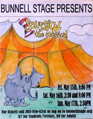 Seussical will be performed Friday, May 15th, at 8:00 PM; Saturday, May16th at 2:30 and 8:00 PM, and a matinee performance on Sunday, May 17th at 2:30. Tickets are $9 for adults and $7 for students, children, and senior citizens. They may be reserved by going to www.bunnellstage.org or by calling (203) 816-8241.