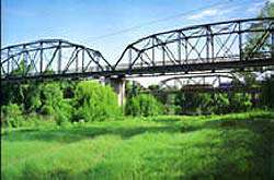 Tucked along the meandering banks of the Colorado River, Columbus is accessible by several bridges. Of special interest is the Highway 90 bridge, listed on the National Register of Historic Places, a Multi-span Parker Through Truss bridge, which was opened in 1932 near Beason’s Park. This location, a common crossing point for Austin Colony settlers, became the nucleus of the city of Columbus. An earlier bridge, built in 1884, collapsed in 1928 as a motorist was crossing. The bridge in the background is used by the Union Pacific Railroad.