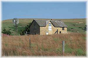 R. STONE HOUSE OF JULIAN C. UFFORD – Built in 1885 from native stone taken from cliffs just a short distance southeast. Located 4 miles east of Achilles.