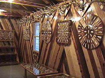 Artisan, Tony Sanders, has achieved a unique blend of woodworking and history with his collection of over 4,000 arrowheads. All of the woodwork from the building to the display cases are built by hand from over 16 different native woods and shaped into various patterns.