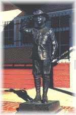 The first boy scout troop in America was organized in Pawhuska, Osage County, Oklahoma, in May, 1909, by Reverend John F. Mitchell, a missionary priest from England sent to St. Thomas Episcopal Church, by the Church of England. Rev. Mitchell, who had been associated in scout work with Lord Baden-Powell in England, organized the troop of Boy Scouts under English charter, and equipped them with English uniforms and manuals. A life-sized bronze statue stands as a monument in front of the Osage County Historical Museum to honor Reverend Mitchell and the 19 charter members who were organized under English charter.