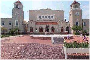 The Centennial Plaza, with its backdrop of Spanish Colonial Revival