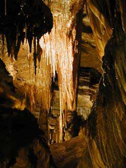 Rated in the top 10 of US tour caves, temperatures stay at a comfortable 62 degrees year-round. Gemstone panning available; gift shop, rock shop, homemade fudge shop.
