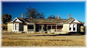 In 1885 the first section of the house at Cottonwood Ranch was constructed. The original house was a one-room, native-stone building measuring thirty-two and one-half by eighteen and a half feet on the inside, with a sod-covered roof and an earthen floor. During the winter of 1885 a severe blizzard swept through the area, and the temperature was so cold that ice formed on the inside north wall of the house. In late 1888 or early 1889 the sod roof was removed and replaced with wood. Later, two additions were added to the original house; first the west and then the east sections, giving its present appearance.