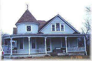 The gingerbread trim home was built by Mr. Eck, who was a lumberman in Alma. It was built in 1904 and features a turret room, a tower resembling a castle, and original lap siding.