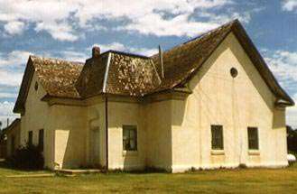 Several structures in succession, all at the same location, housed the congregation of the First Baptist Church from its founding in 1877 to the present. The group initially worshipped in a dugout, which was replaced by a soddie, another dugout, and eventually a small limestone structure. The current structure, an L-shaped building with intersecting gable roofs, was completed in 1907. The exterior walls are limestone, and the structure was coated with stucco circa 1940. The 1960 addition features concrete unit masonry covered with stucco. The building has several irregularly spaced and shaped buttresses of limestone rubble coated with stucco. An articulated vestibule at the intersection of the ell segments marks the entrance to the church.