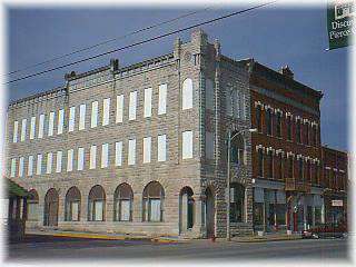 The old First National Bank building was located next to the bandstand was built in the 1890s. After the Lawrence County Bank (on the opposite corner) was dissolved in the mid-1920s, the First National Bank soldiered on alone as the last of Pierce City’s early bank buildings until finally being replaced by a more modern structure in the early 1960s. Of the orginal bank interior little remained but the old walk-in vault, but a look up at the third-floor exterior of the old carthage-stone structure revealed it was also designed to serve as a meeting hall for the Masonic Lodge.