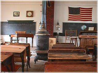 Construction of the original school building Cost $100. The furniture consisted of a wood heating stove and homemade benches and tables which served as desks and chairs. The school did not have a uniform set of books. Each pupil used what they had at home so class was taught from a variety of books from several different states.