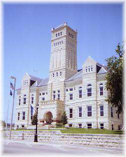 This Roman Revival building was commissioned May 20, 1899, and was completed in May, 1900 at a cost of $35,000. It was built by the firm of Ziegler and Dalton of magnesium limestone quartered in the nearby bluffs. The stone was so soft that it could be hand sawed by the German and Swedish masons prominent in this area. The architect was J.C. Holland, who designed similar courthouses elsewhere in Kansas, including those in Manhattan and Clay Center, with the Clay Center building also built by Ziegler and Dalton.