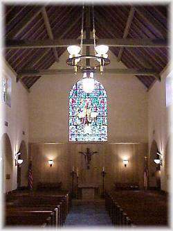 Qne of the stained glass windows which were created in England, shows the Whitehurst memorial window which depicts Christ with the children.