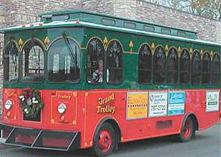 The Grand Trolley is also available for charter service during the service off-hours. The trolley may be chartered for wedding parties, Christmas tours, Christmas parties, or providing group transportation from motels/resorts to restaurants, attractions or the retail area.