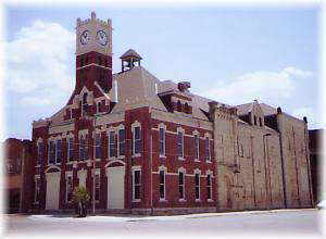 The Junction City Opera House and City Offices/Fire Station opened in January, 1882, in a stately red brick structure featuring a tall pointed tower with a four-faced clock. In January 1898, almost 16 years after the day it opened its doors, the Opera House was ravaged by a disastrous fire. The south portion (opera house) was rebuilt the same year using native limestone from quarries near Fort Riley. The front (city building) portion was restructured with a similar facade but a slightly different tower.