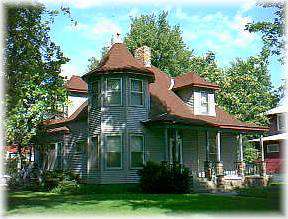 1402 Lake Avenue – Dr. Plum, one of the first doctors in Gothenburg, built this home in 1899. The wooden design around the turret windows is original. The master bedroom occupies the upper turret and the living room occupies the lower. Dr. Plum owned the first automobile in Gothenburg; a high-wheeled chain drive, with a stick-like steering device.