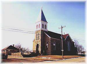The construction of this native stone church was the result of the original frame church burning. The cornerstone of this church was laid August 27, 1899 in the new native rock structure measuring 44 by 100 feet. The building, a combination of Roman and Gothic architecture, was contracted by V. Bauer of Horton, Kansas who employed home workmen only. Much of the work and material was donated by both Catholics and non-Catholics. The church was dedicated on December 19, 1899.