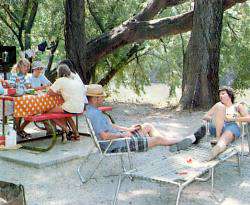 Sites 13 through 26 now have 50 amp electrical service. The shower building in this park is ADA compliant. A newly completed fishing dock is located at the downstream end of the park next to campsite 37. Two fish feeders are placed near the fishing dock. A universal access concrete ramp provides access to the fishing dock. No mooring of boats will be permitted from the dock.