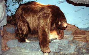 One of the displays is a fiberglass replica of a Shasta ground sloth. The 80,000 year old remains of one such ground sloth were found in the Caverns.