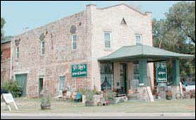 One of Pawnee Rock’s oldest buildings is the former Knights of Pythias hall, which started out as an opera house and was one of the first buildings erected in Pawnee Rock after the railroad came through in 1872. The sandstone walls were made of stone taken from the outcrop north of town — the real Pawnee Rock. Until the early 1960s a diner with a pressed-tin ceiling and jars of pickled pigs knuckles on the counter occupied the building. The building now houses an antique shop.