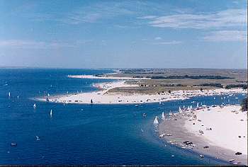 Probably the most popular area at Lake McConaughy, Martin Bay appeals particularly to anglers, pleasure boaters, water skiers, and sailing enthusiasts. Typical of Lake Mac’s north shore, the bay is ringed with clean, fine sand making for a fine swimming beach. Behind the ring of sand, clusters of trees offer welcome refuge from a hot summer sun, plus variety to the sand-water landscape. The area also offers a boat ramp that’s usable during part of the low-water season.