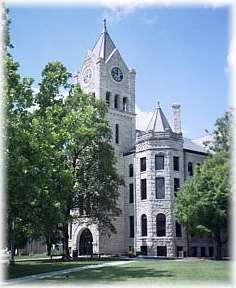 The cornerstone for this magnificent city landmark was laid in 1894 at a building cost of $35,000. The courthouse, built of native Kansas limestone, is listed on the National Register of Historic Places, and was completely refurbished in 1980. The 105 foot tower houses a tower clock which was converted to electricity in 1948. Almost no changes have been made to the outside of the building in its century of life. It is a prime example of the Richardsonian Romanesque architectural style of Kansas’ 19th Century courthouses.