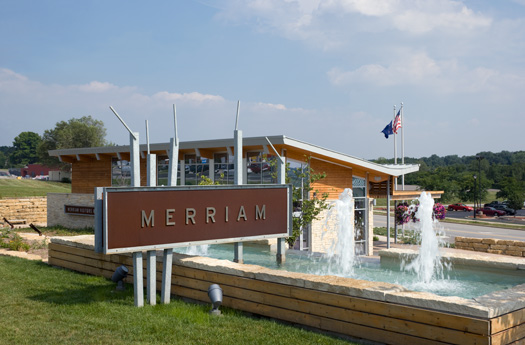 Merriam Historic Plaza & Visitors Bureau is located along I-35 at Exit 228B in Merriam. This site enhances the entrance to Merriam and provides visitors and residents with an outdoor preview of Merriam’s history from pre-settlement to current day. A paved walking path, historic signage, beautiful fountains and custom-designed sculptures are a few of the features at this beautiful site. Merriam Historic Plaza is also home to the Merriam Visitors Bureau and includes meeting space for up to 50 people, available by appointment (fees apply; please inquire).