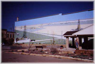 This mural is painted on the side of the building bordering Cecil Bricker Park at 8th and Main in downtown Russell.