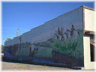 The mural located in downtown Gordon created in 1991 expresses the pioneer growth of the area in the late 1800s and early 1900s.