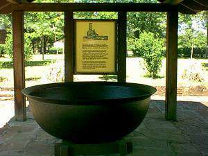 Salt was obtained by boiling water from salt springs in large kettles set atop wood-fired furnaces. As the water evaporated, the crystalized salt was ladled out of the kettle and deposited on a lower portion of the furnace. After cooling it was put into barrels for shipment. Although most salt made in Indian Territory was used locally, some was sold as far away as New Orleans.