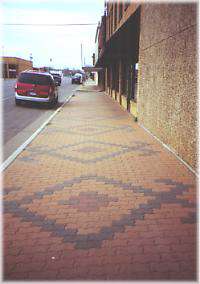 Sidewalk pavers display an Indian mosaic design of the teepee, fire and arrows representing home, warmth and protection of the home respectively.