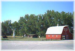 museum owners to replicate the original “soddies” used extensively by early settlers in the Central Plains Region. The sparse interior reflects the hard times faced by pioneer families. A wooden windmill in an old farmstead setting, life-size barbed wire sculptures of a buffalo and a Native American on horseback lend a realistic flavor to the site.