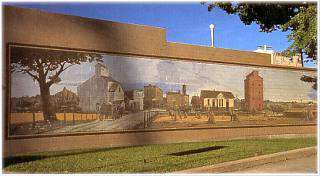 The Stan Herd mural painted in 1986 on a building on Main Street shows the artist’s vision of how Inman might have looked in 1910. Several of the buildings seen in the mural are still standing, including the Odd Fellows Hall which now houses the public library.