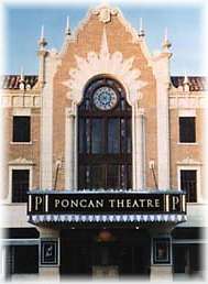 courtyard. By 1929, when it was apparent that the "talkies" were here to stay, the theatre was remodeled. The marquee was enlarged, seats replaced, and a waterfall-type curtain replaced the original. The theatre was closed on October 11, 1985 after 58 years in operation. In 1989, a group was formed to restore and operate the Poncan. The grand reopening was held on September 11, 1994.