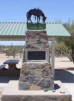 October 12, 1940, was a sad day for fans of movie hero Tom Mix. Heading north from Tucson in his big Cord, he lost control of the car and rolled over in a ditch, subsequently renamed Tom Mix Wash. A roadside monument, topped by a riderless horse, marks the spot. A rest area here has picnic tables.