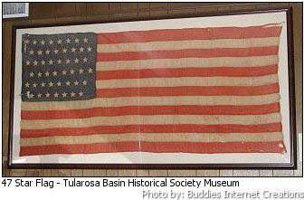 One of the most unique exhibits at the Tularosa Basin Historical Society Museum is a 47 Star, US Flag. Presently it is known that there are only two 47 Star Flags in existence for the public to see and for researchers to study. The second is located at the Museum at the Palace of Governors in Santa Fe. The flags were evidently manufactured during the brief period of a few weeks from January 6 and February 14, 1912 when New Mexico (47) and Arizona (48) were admitted to the Union.