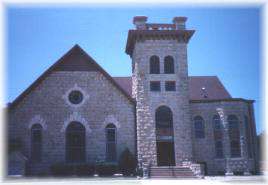 The cornerstone of the first frame church was laid in 1868. It must have taken a while to erect the first church, as it was not finished until 1870. That church was destroyed by a tornado in 1873. The cornerstone for the present stone church was laid September 18, 1873. The church was finally finished in 1878 at a cost of $1,800 and dedicated in 1879 with the finishing work done in 1882 at a total cost of $8,000. The original building is of Flint Hills limestone. The educational building was completed and dedicated October 27, 1963.