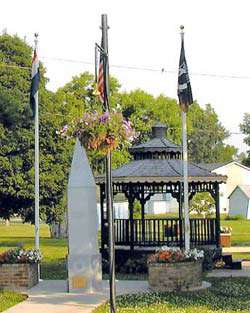 Gazebo park featuring monument to all veterans of all wars.