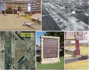 The model of the Walker Army Airfield that is on display at Forsyth Library on the campus of Fort Hays State University was completed in October 2000 by Fort Hays State University student Steve Arthur. The Walker Army Airfield was located in Ellis County, about 2 and 1/2 miles northwest of Walker. Although the land where the airbase was once located is currently on privately owned property and not open to public access, the road leading north and west from the town of Walker is a county road that goes past what use to be the main entrance gates. The old abandoned smoke stacks, several remaining hangar buildings and many concrete foundations are visible from the road. The miniature airbase display shows the relationship of locations for several of the hangars, barracks, supply buildings and other structures that would have been located west of the main airbase runways.